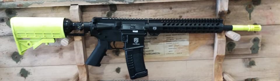 3.5 – Arma Longa: Pinta com cor fluorescente amarela ou encarnada, 10cm contar da boca do cano e na totalidade da coronha.
